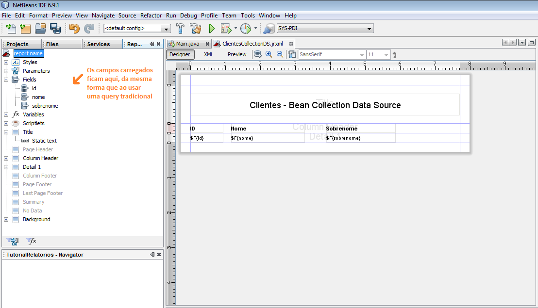 File : C:\<caminho>\TutorialRelatorios\relatorios\ClientesCollectionDS.jrxml ... OK.